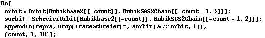 We translate it to Cycles notation. We see that there are 18 points in the base and 99 generators (a SGS with only 19 generators is known for the Rubik's group):