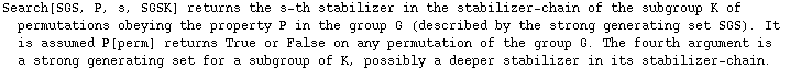 The function Search implements backtracking to search for a SGS of a subgroup of a given group: