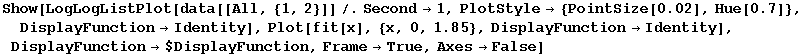 This is a log-log plot. A straight line represents a power-law. The fit on the last half of points seems to favour a fourth power-law scaling.
